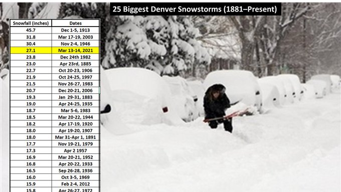 Blizzard Of March 2021 Will Stand As 4th Biggest Snowfall On Record For Denver Final Update And Snowfall Totals